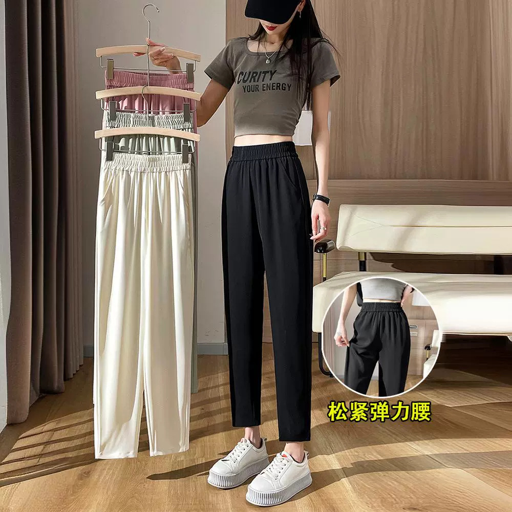 冰丝裤夏季薄款女西装哈伦烟管裤大码女裤八九分松紧腰女奶奶裤