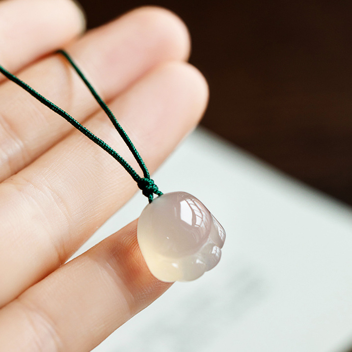 Liontin gesper keamanan kalsedon es alami rantai klavikula bulan kalung kucing Xingshi liontin giok anak-anak