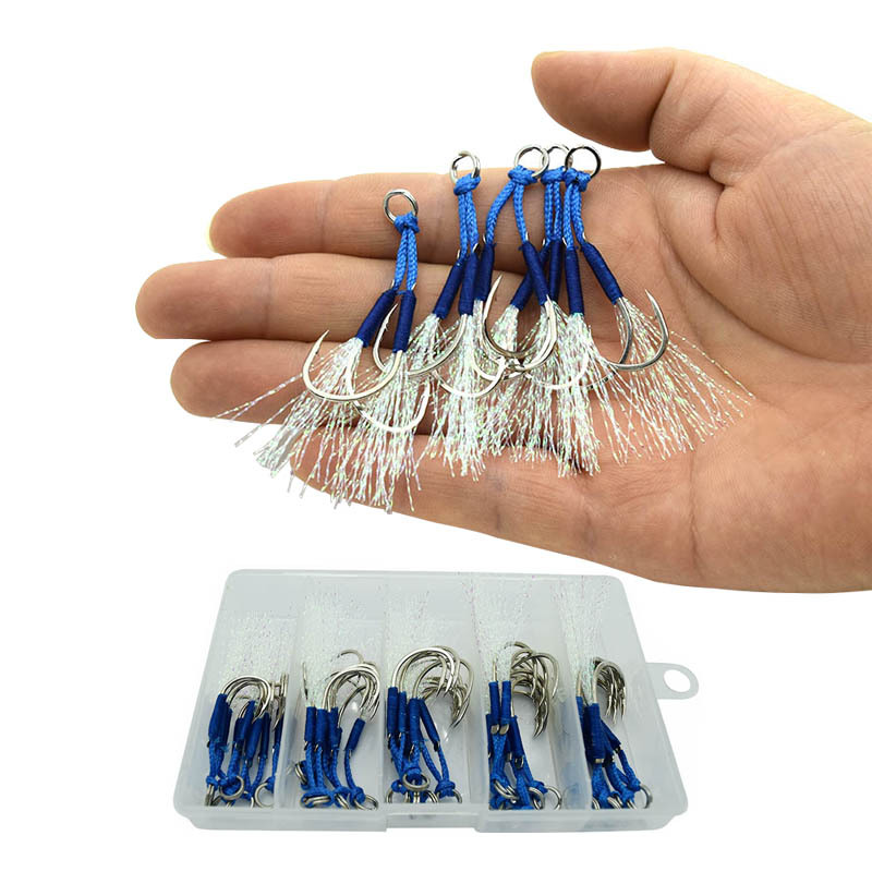 Set kotak kait besi karbon tinggi, 25 buah kait baja, kait ganda, plat besi alur darah, kait ganda, setelan mata kail