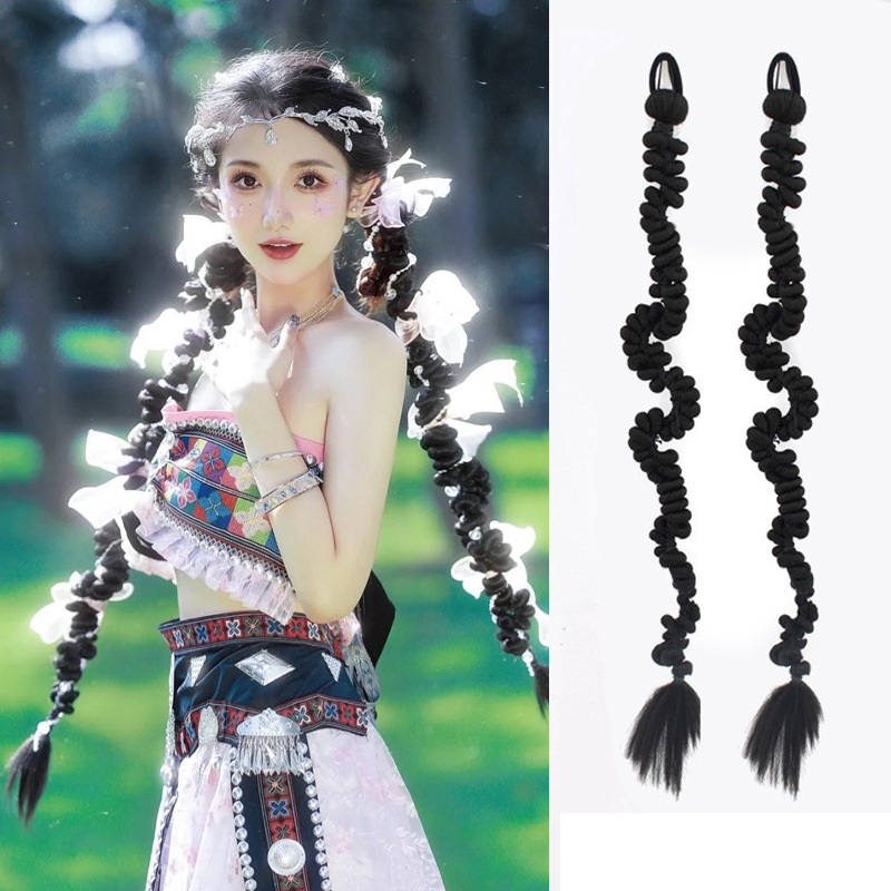 Wig kucir perdagangan luar negeri kuncir kuda wanita tenunan tangan kepang putar manis keren panas gadis kotor kepang kepang ekor kuda palsu di stok grosir