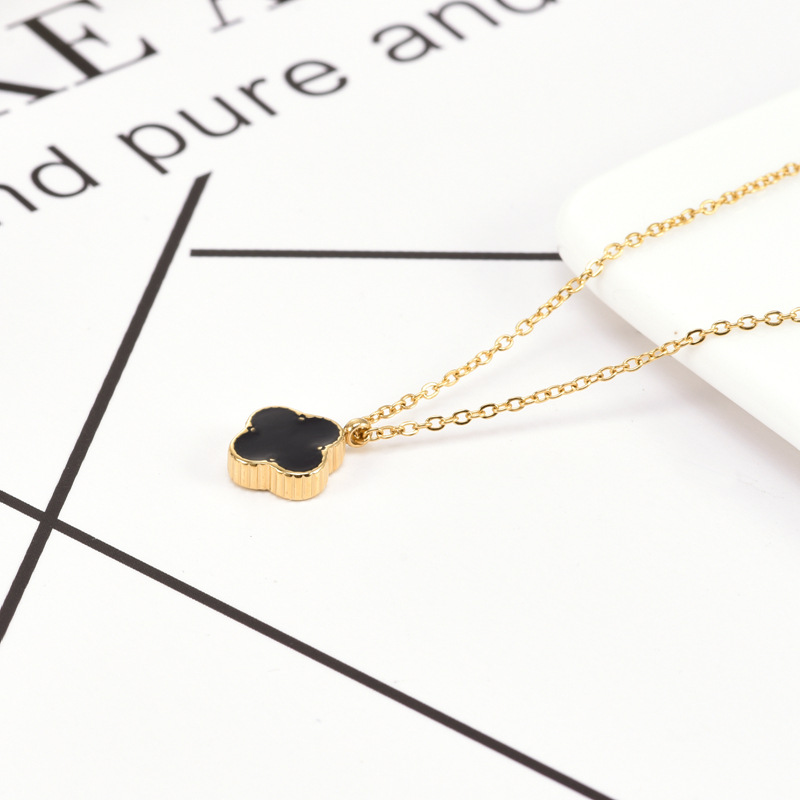 Ins kalung baja titanium wanita, Kalung simpel liontin mawar emas cangkang semanggi untuk perempuan