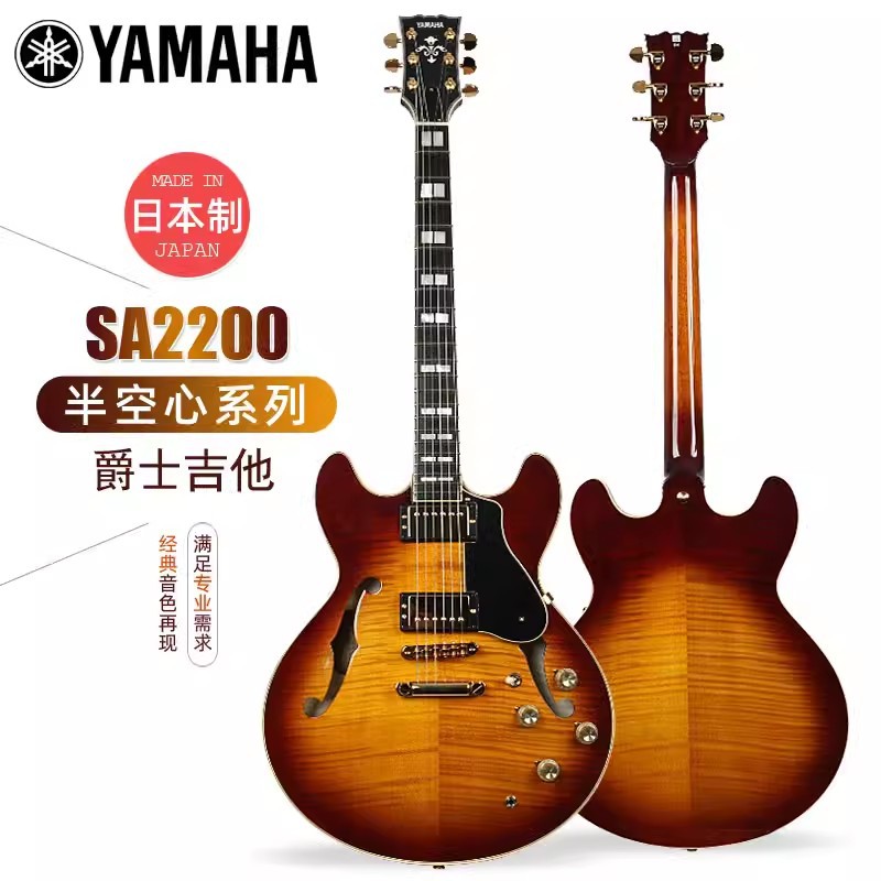 Yamaha SA2200 gitar listrik semi-hollow, gitar jazz sudut hilang ganda, gitar asli Jepang