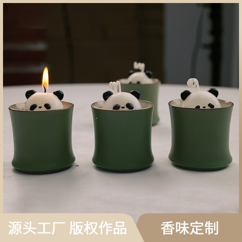 Lilin aromaterapi bentuk panda bambu, kotak hadiah daya tarik tangan kreatif dekorasi suasana dalam ruangan Lintas Batas