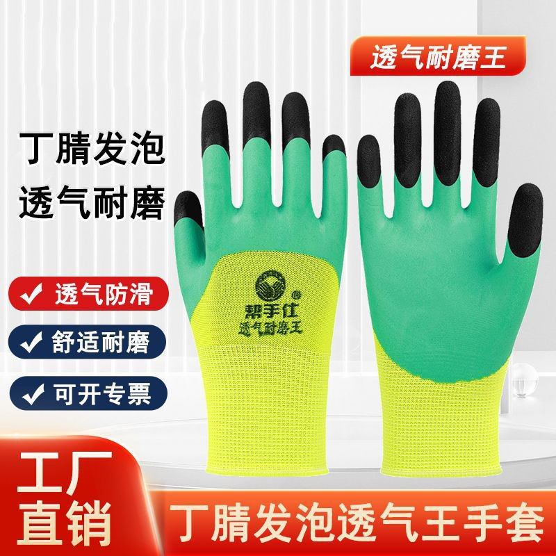 Sarung tangan jari musim panas yang diperkuat, busa lateks, tahan aus, tebal, anti-selip, tahan lama, sarung tangan karet yang dapat bernapas untuk pekerjaan konstruksi.