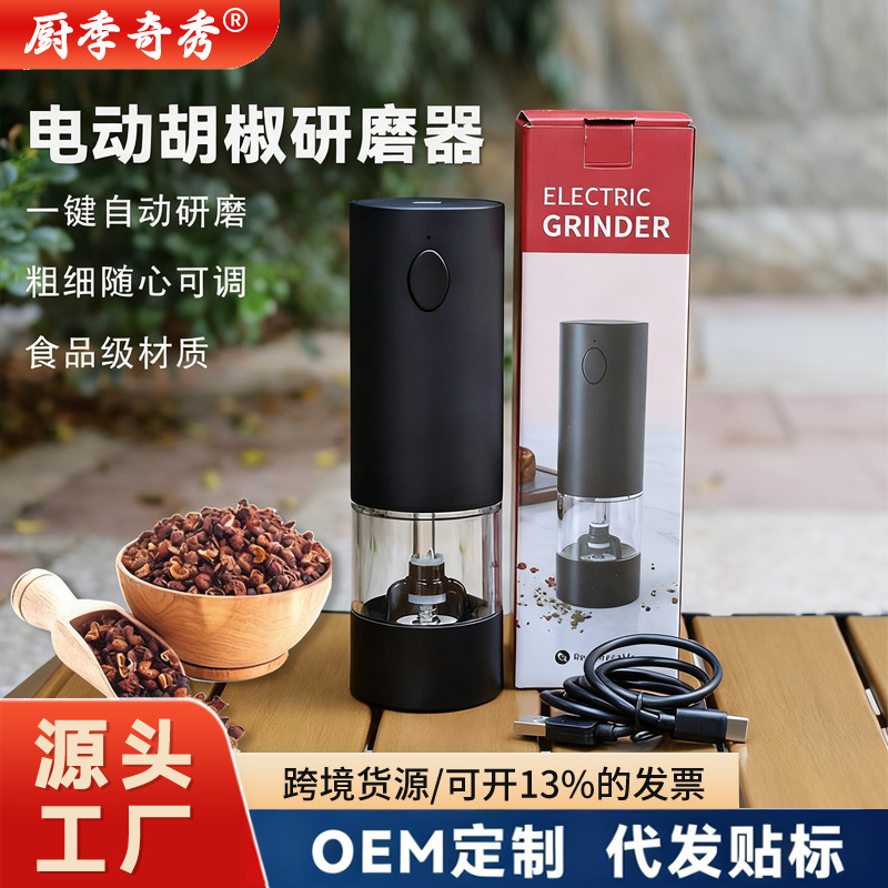 Penggiling lada elektrik nirkabel untuk pengolah makanan lintas batas, penggiling bumbu dapur stainless steel, penggiling elektrik