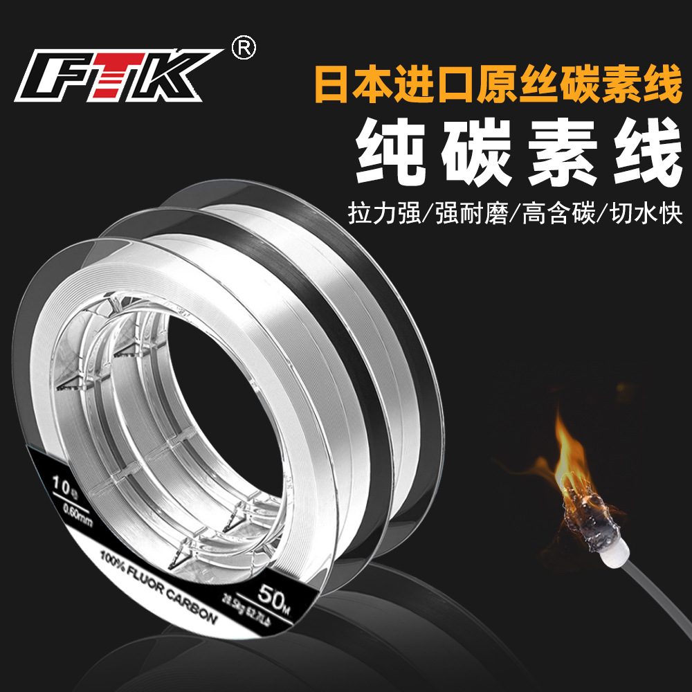 FTK senar karbon fluorine Qian Luya karbon asli 50m, senar karbon impor sub-line sutra mentah senar utama memancing laut lintas batas grosir