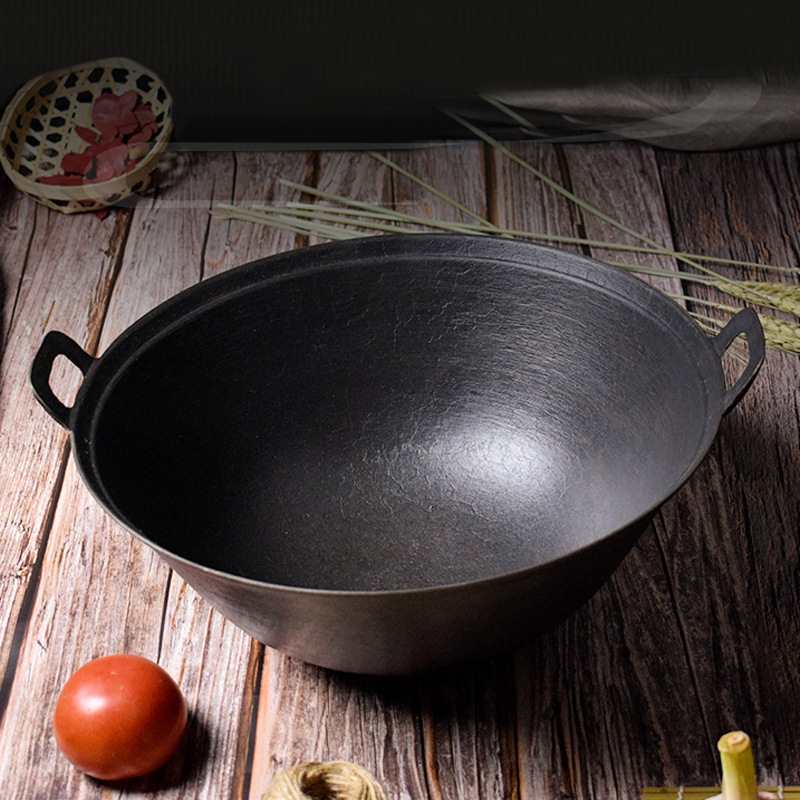 Grosir dua telinga pot besi tradisional kuno memasak rumah tangga babi besi kompor gas bawah bulat tebal tidak dilapisi antilengket casting