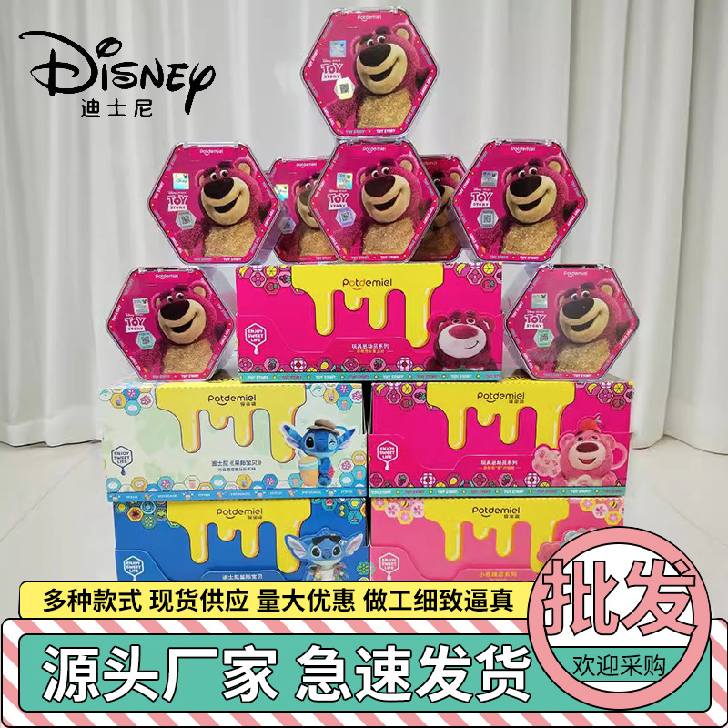 Boneka Asli Disney Strawberry Bear Stitch Boneka Mainan Stitch Winnie the Pooh Buka Kotak Buta Liontin Boneka
