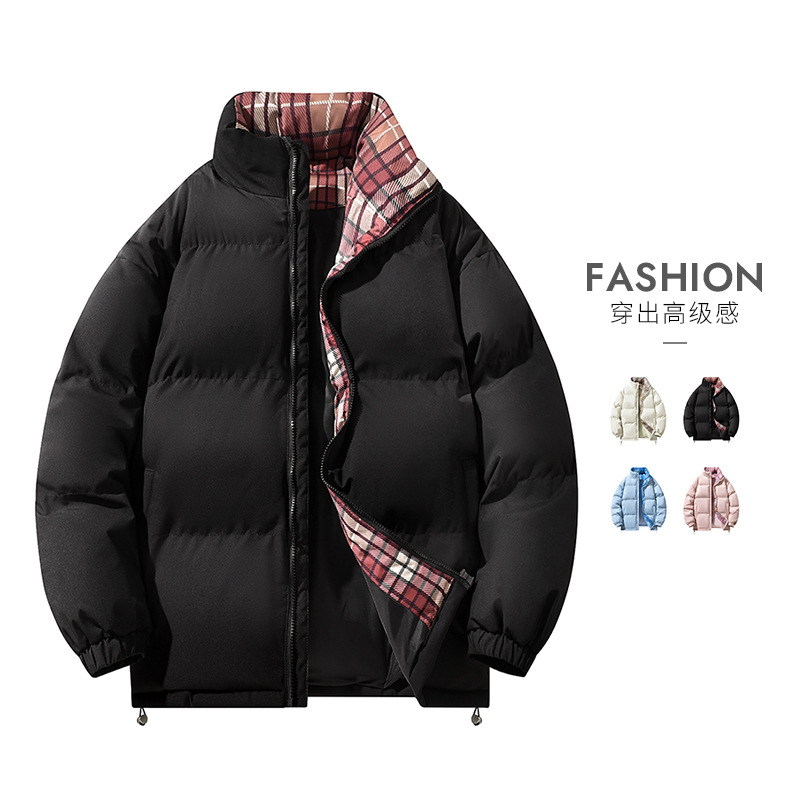 Jaket katun dasar pria musim dingin tebal merek trendi kerah berdiri mantel katun pria atasan trendi.