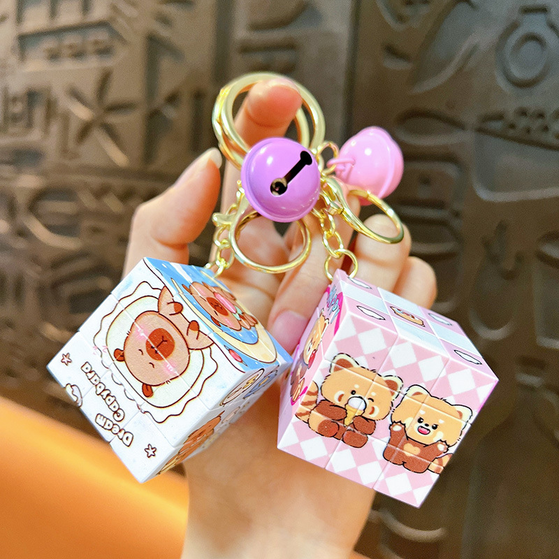 Coolomi liontin kubus Rubik, gantungan kunci tas sekolah liontin mainan edukasi kubus Rubik mini portabel