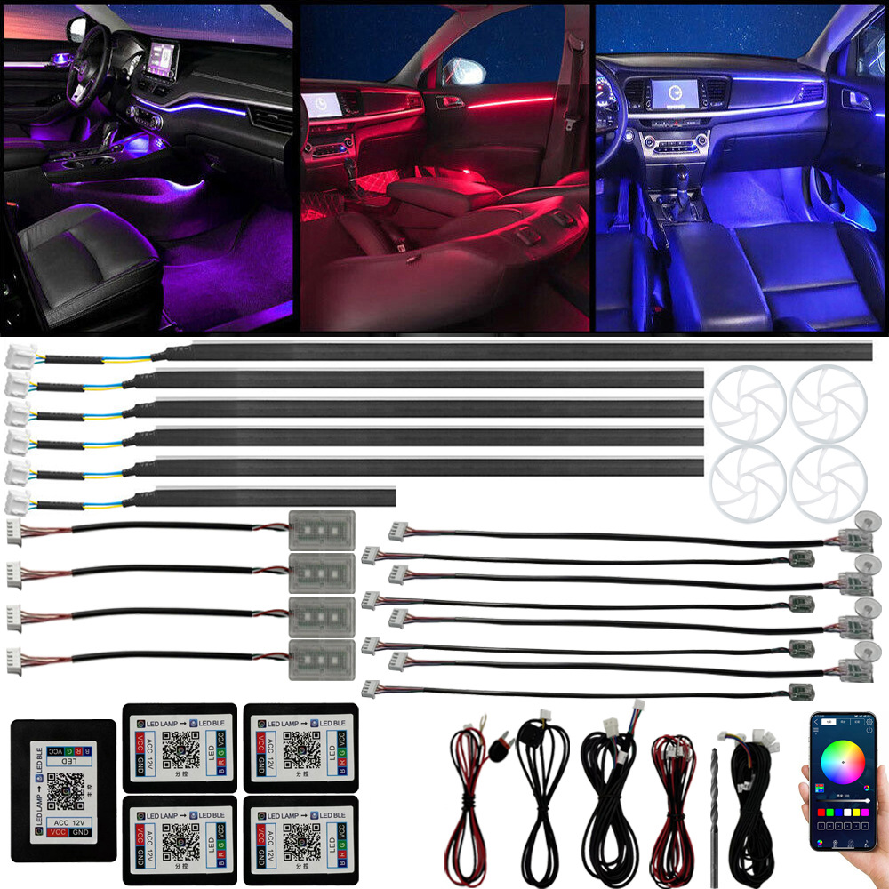 Lampu depan interior mobil RGB, 18 lampu 22 lampu sangat tipis kontrol pusat tidak terlihat panel instrumen lampu kaki