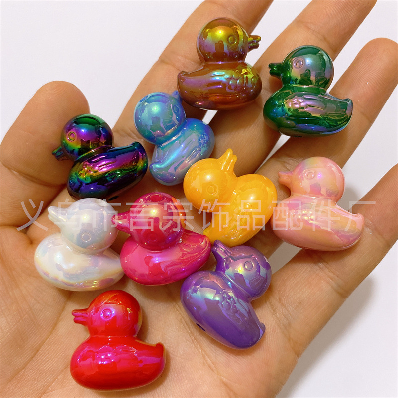 Aksesori Mobil rantai kunci ponsel DIY manik-manik bebek lubang vertikal tiga dimensi berlapis warna solid akrilik