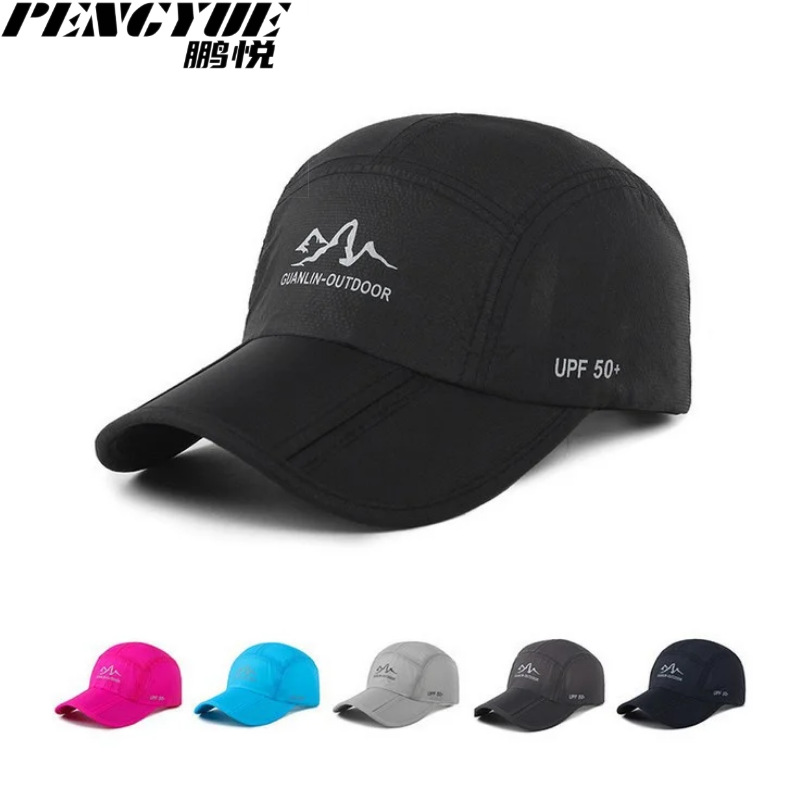 Topi bisbol lipat pria Korea, topi olahraga kain cepat kering luar ruangan, topi matahari perjalanan grosir musim panas dan semi