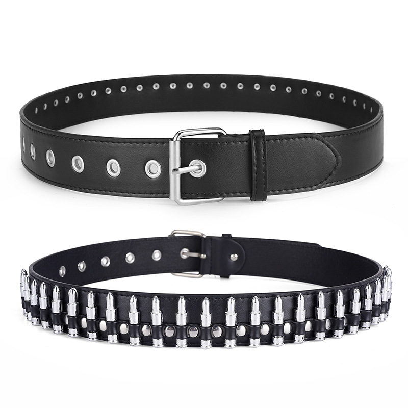Cross-border sabuk jins dekoratif pria dan wanita, fashion gaya ins Eropa dan Amerika baru bertatahkan peluru kepribadian punk