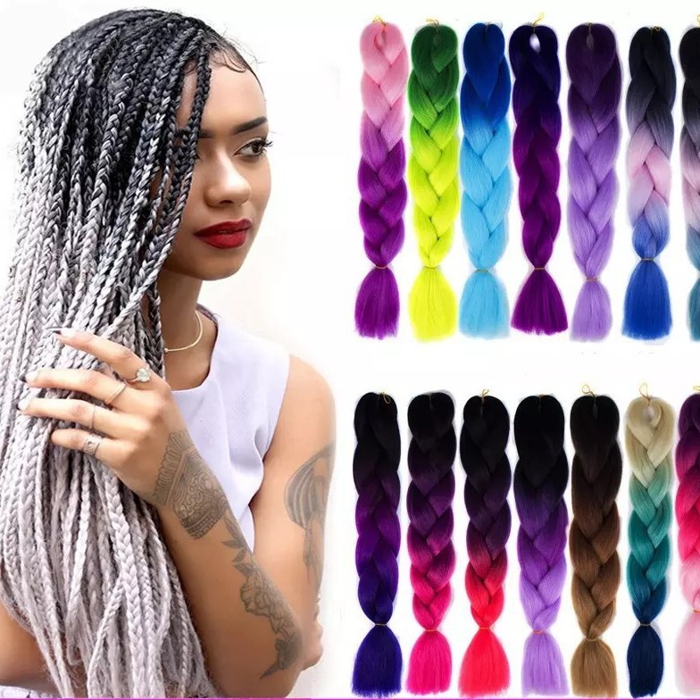 Grosir kepang ekstensi rambut kepang kotor warna gradien Afrika kepang besar wig Eropa dan Amerika grosir wig serat kimia perdagangan luar negeri