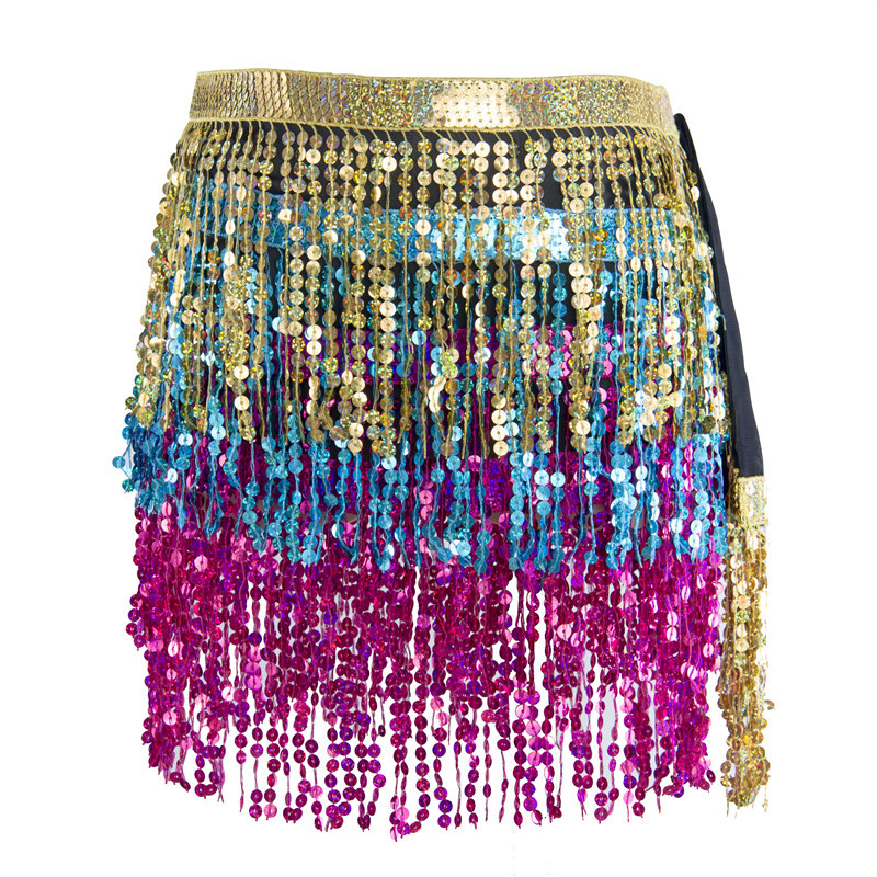 Kostum tari perut kostum pertunjukan berpayet rumbai syal pinggul payet rantai pinggang berpayet rumbai rok tari pertunjukan prom syal pinggang