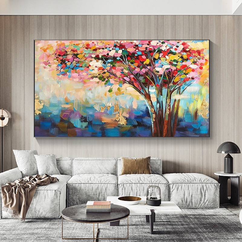 Lukisan minyak pohon keberuntungan abstrak lukisan tangan berlian imitasi kruistik ruang tamu besar 5D lukisan Berlian modern minimalis bata bordir