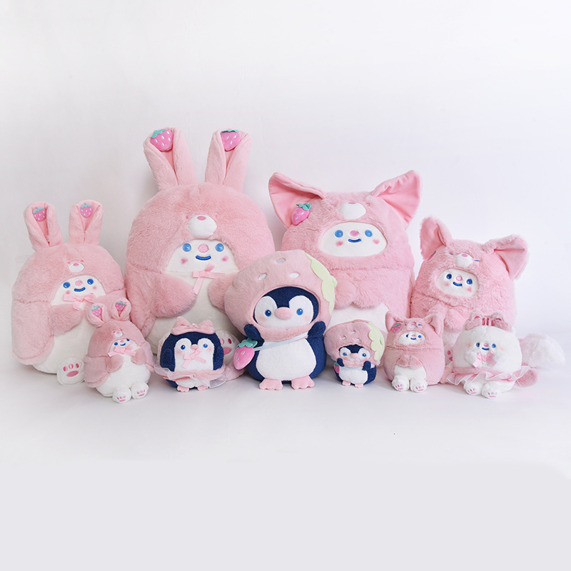 Capelon baru seri stroberi beruang kutub penguin berpakaian sebagai kelinci rubah mainan mewah bantal liontin