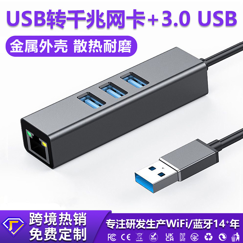 Pemisah port jaringan USB ke RJ45, stasiun Dok kartu jaringan kabel eksternal Gigabit, bebas penggerak HUB komputer
