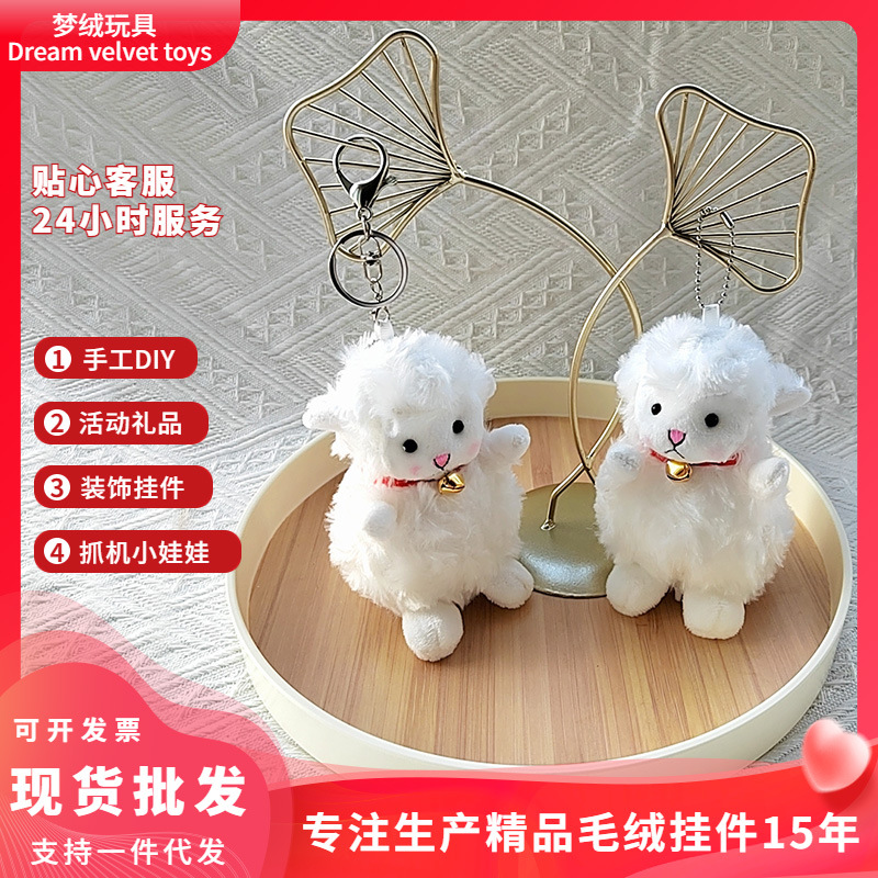 Boneka gantungan kunci plushie bergaya Ins dengan lonceng, dekorasi ransel domba, mainan gantungan kunci, boneka mesin cakar grosir, versi lonceng.