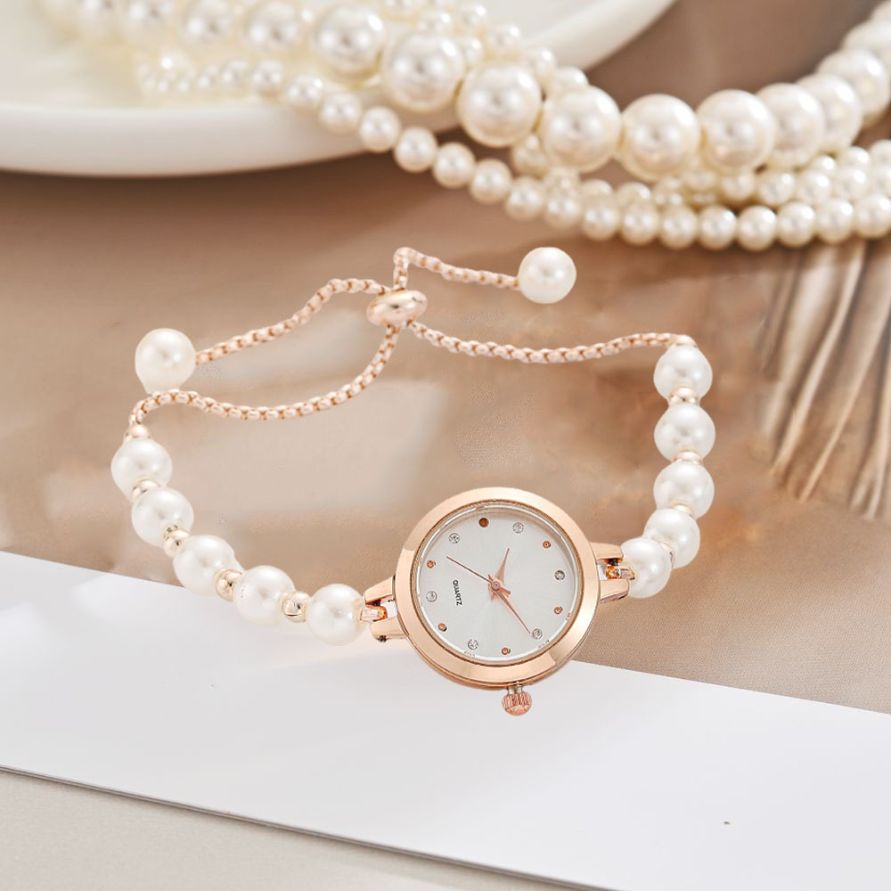 Gelang Mutiara Model Baru Modis Jam Tangan Kuarsa Wanita Jam Tangan Kecil Tipis Jam Tangan Kuarsa Orang Malas Jam Tangan Kuarsa Disesuaikan Bebas
