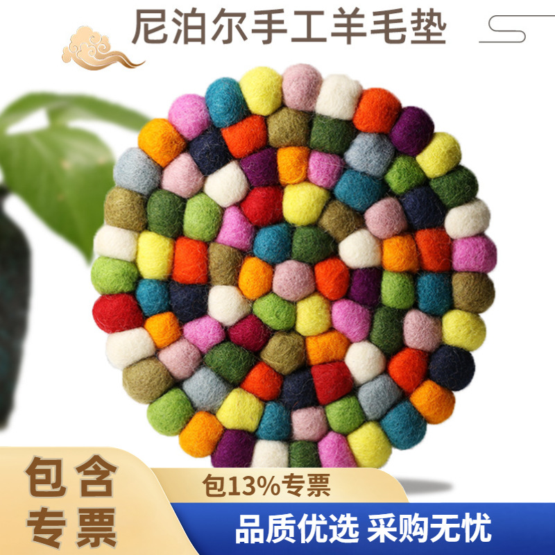 Alas wol felt buatan tangan Nepal, alas bola wol bulat, alas mangkuk, alas gelas, alas pembakar dupa, alas alat ritual, langsung dari produsen.