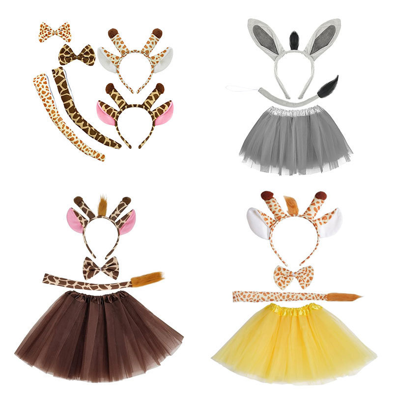 六一儿童节卡通头箍头饰动物三件套兔子猫老虎耳朵领结尾巴成人儿