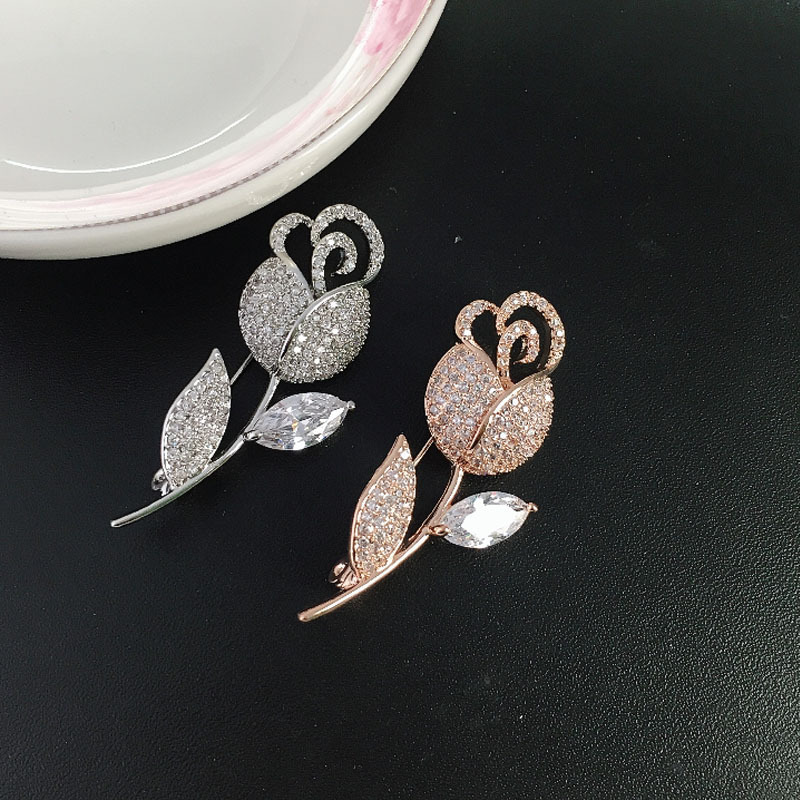 Bros zirkon bertatahkan mikro, aksesori mawar sederhana indah gaya Korea mode baru