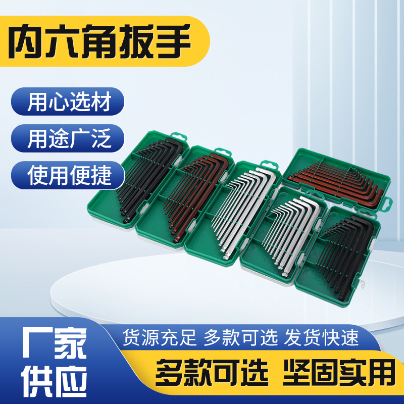 Hex wrench 9 buah setelan kepala datar, kepala bola diperpanjang bentuk L, kunci pas hex, alat bongkar pasang Bagian sepeda