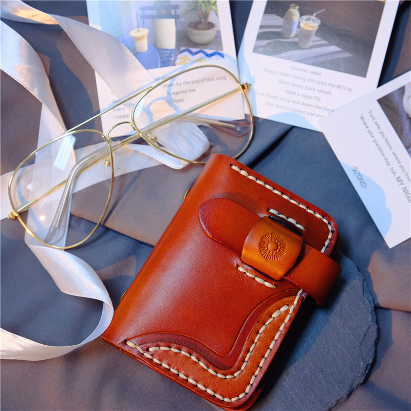 Tas kartu kapasitas besar kulit sapi lapisan pertama krim pohon kulit samak warna antik retro Jepang grosir kreatif
