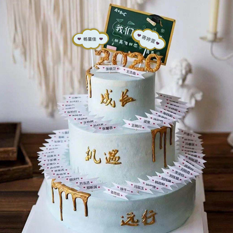 Musim wisuda dekorasi kue kartu tulis cloud flag plug-in tulisan tangan nama lapisan ganda musim buka penyisipan kartu Hari Guru