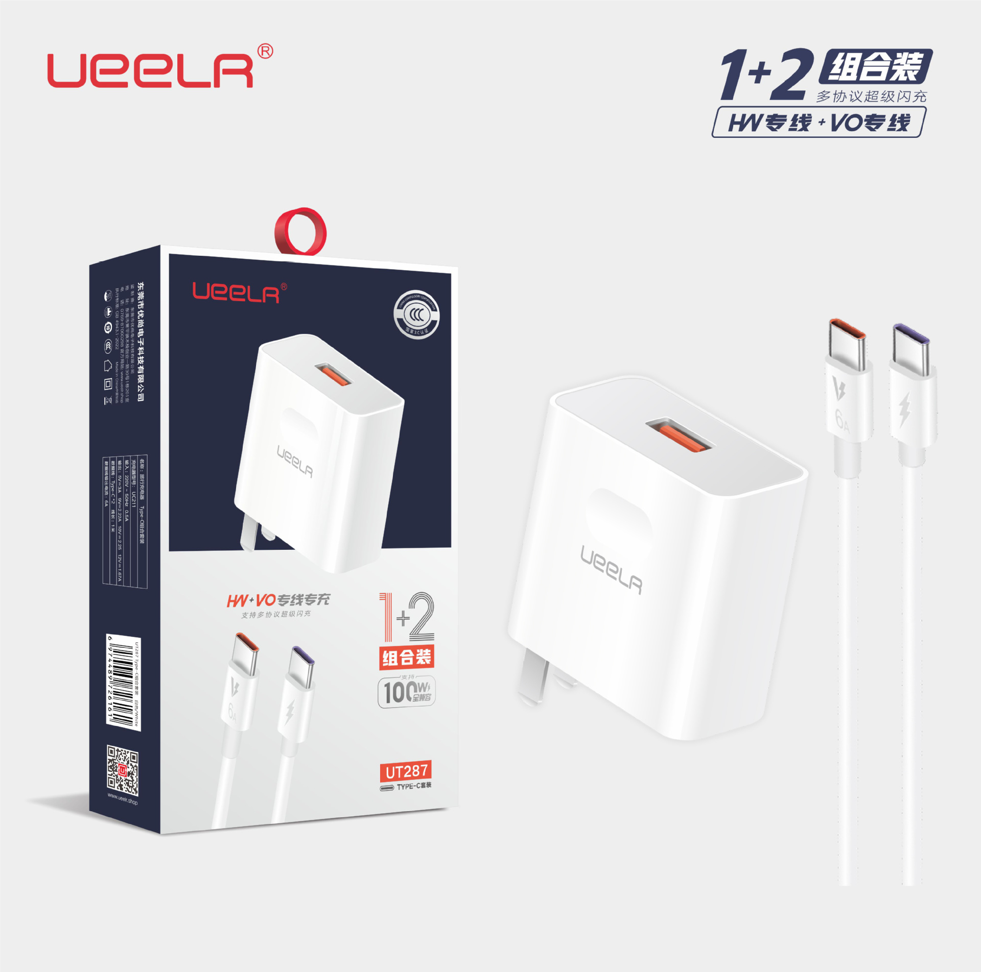 Kepala pengisi daya usb100W untuk ponsel, cocok untuk vivo, Huawei, iqoo, glory, oppo, bersertifikat keamanan, TipeC