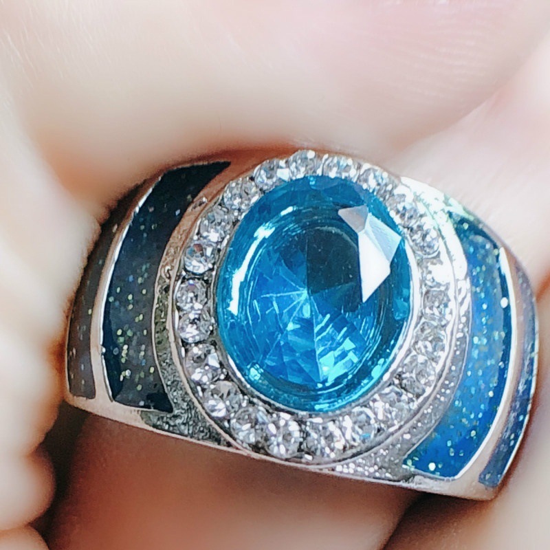 Wish cincin pertunangan kristal biru berlian persegi Eropa dan Amerika baru penjualan laris cincin epoksi permata biru Eropa dan Amerika grosir