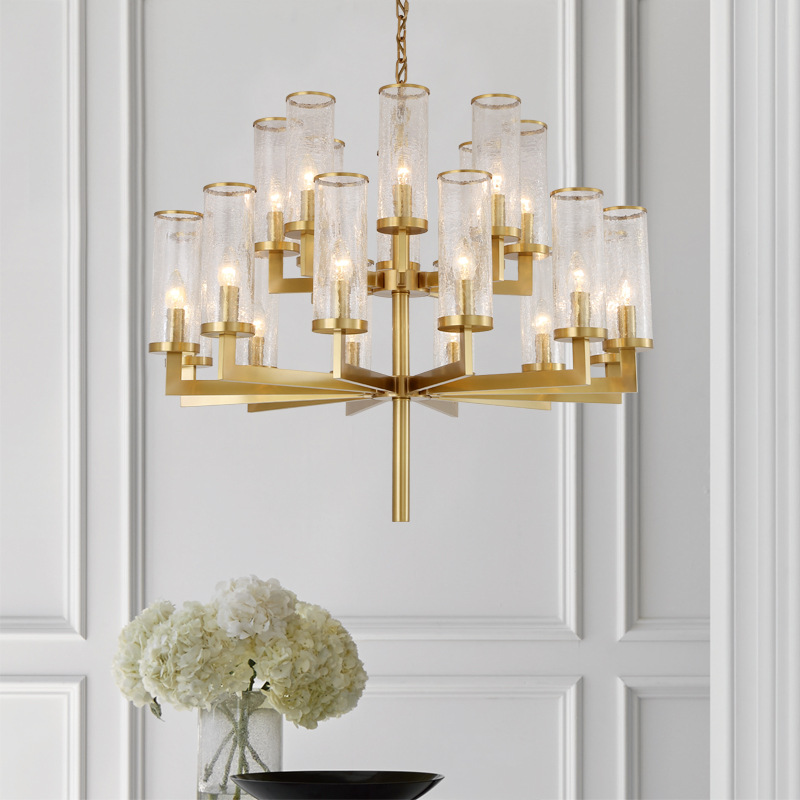 Tangga Kaca Retak Tembaga Baru Gaya Tiongkok Ruang Tamu VC Lampu Gantung Kamar Tidur Ruang Makan Modern Simpel Ringan