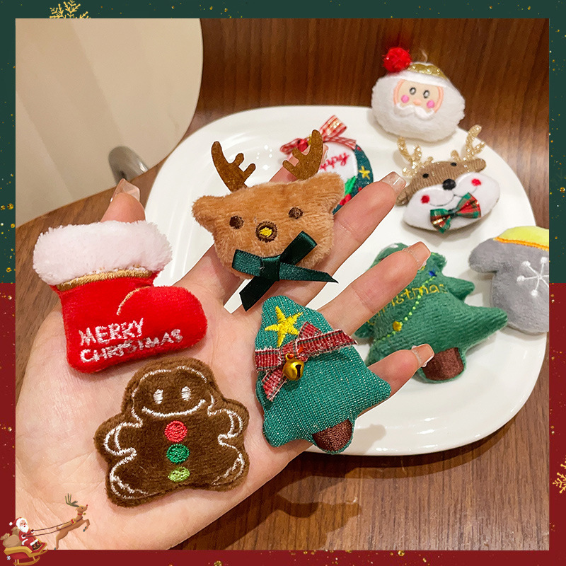 Bros boneka Natal mewah roti jahe pin rusa Santa Claus syal gesper pin Aksesori Aksesori ornamen