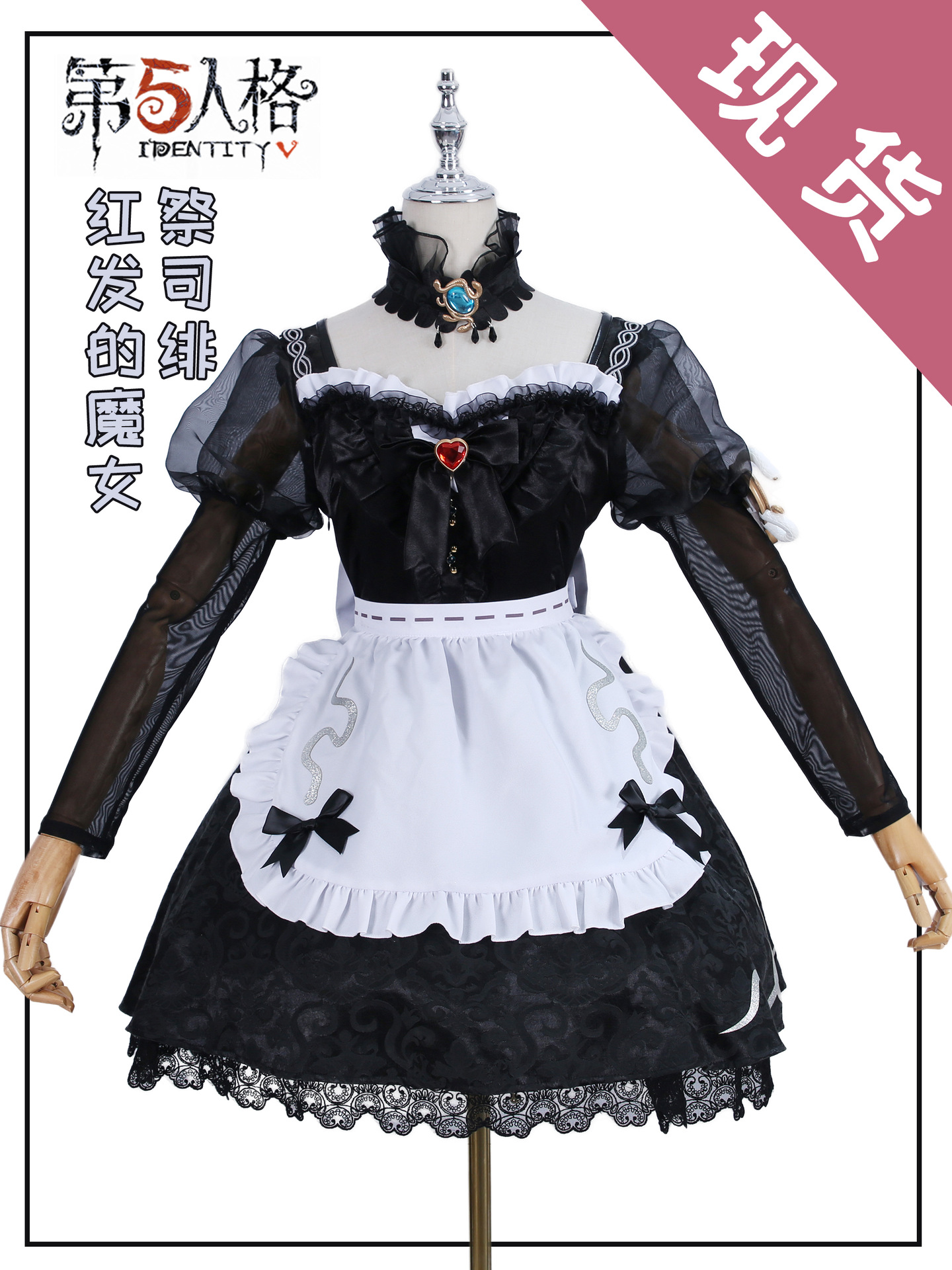 Kostum cosplay Identity V Priestess Scarlet, pakaian cosplay Penyihir Berambut Merah di bawah Kebenaran, set lengkap termasuk tanduk