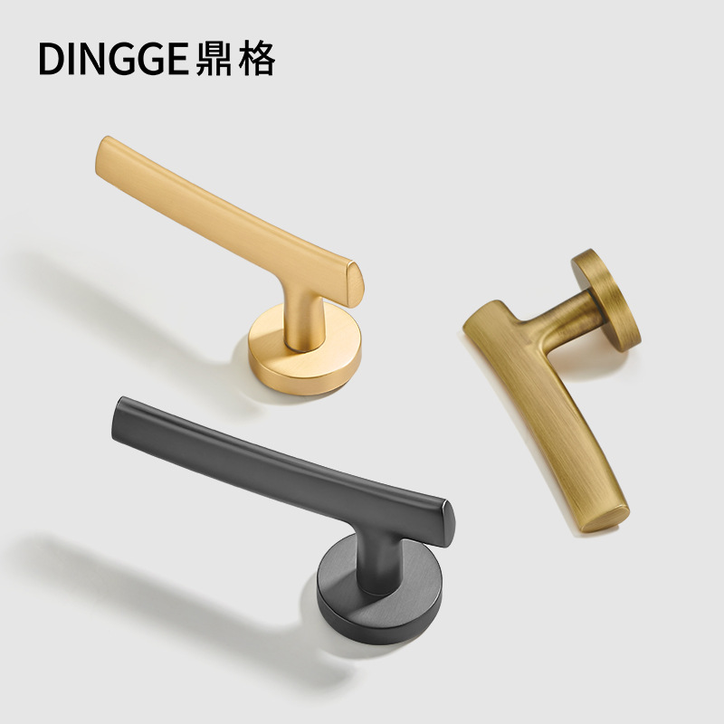 Kunci pintu interior kuningan, gagang pintu kayu solid matte, kunci pintu kamar tidur serba tembaga gaya Prancis, kunci pintu universal senyap, kunci pintu kamar.