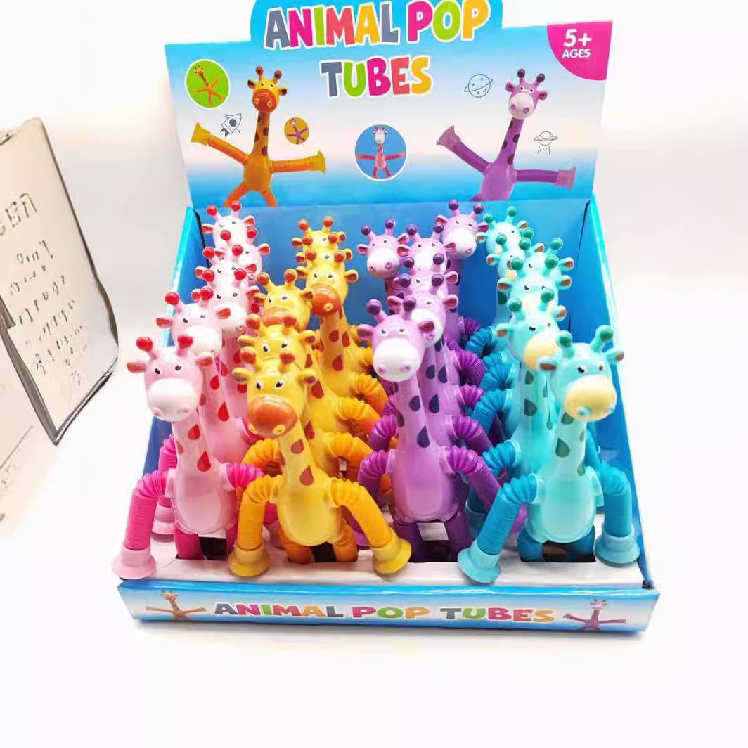 Kartun pengisap tabung teleskopik jerapah bentuk berubah bercahaya tabung elastis jerapah baru pendidikan dekompresi mainan