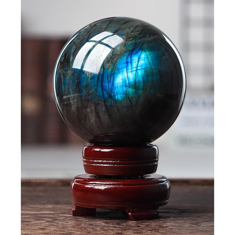 Bola kristal alami warna api Dekorasi batu bulan bola labradorite bola bijih batu mentah permata dekorasi kantor rumah