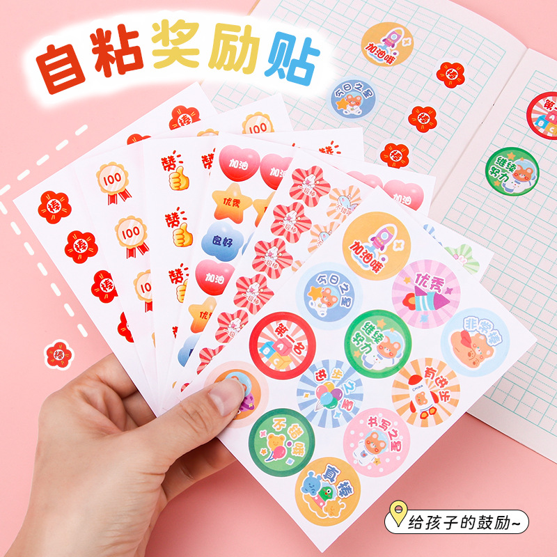 Stiker hadiah taman kanak-kanak kreatif anak-anak Sekolah Dasar stiker pujian belajar berperekat grosir alat tulis guru mendorong