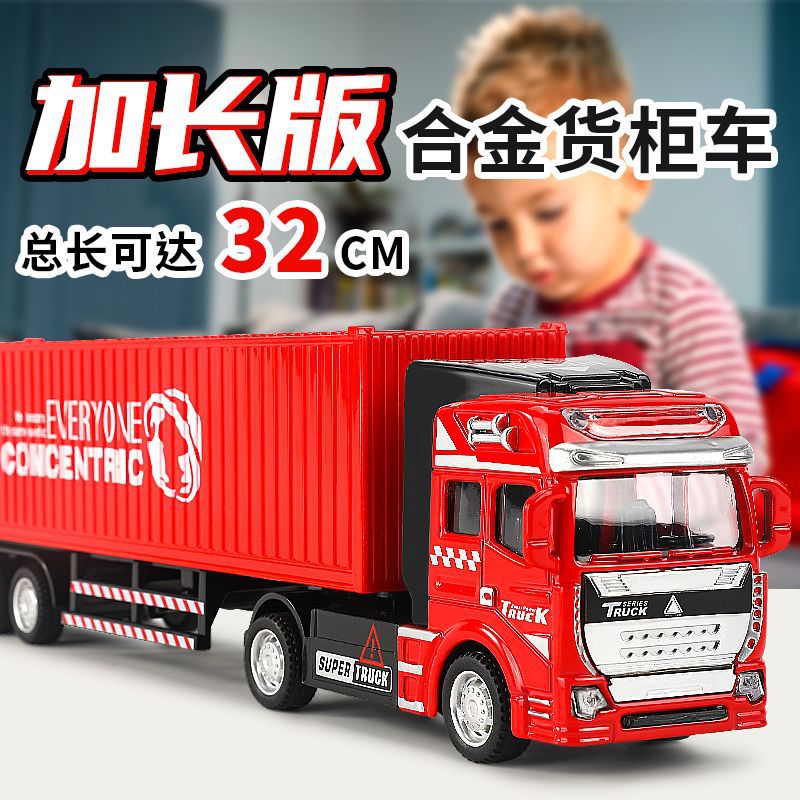 Truk mainan anak-anak, ukuran besar, mainan anak-anak, truk kontainer datar, simulasi traktor semi-gantung, tugas berat, truk
