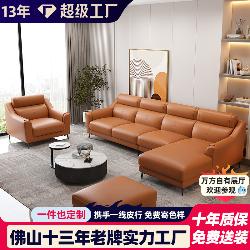 Sofa kulit Foshan lapisan pertama kulit sapi modern minimalis sudut kecil apartemen ruang tamu lurus baris kombinasi furnitur grosir