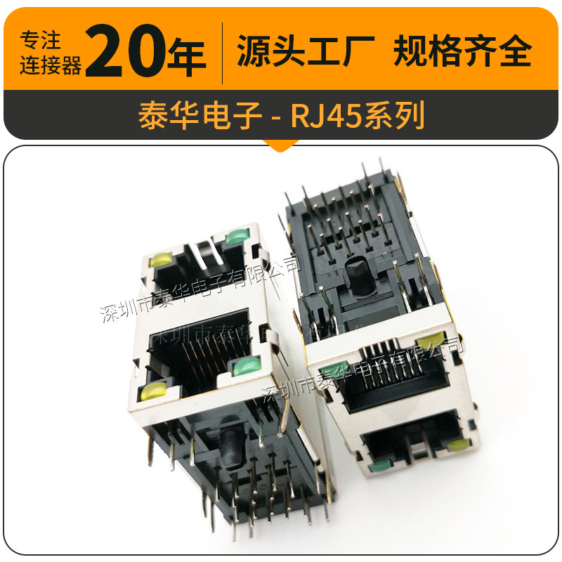 Pasokan langsung pabrik RJ45 lapisan ganda 2x1 cangkang tembaga jala LED dengan perisai 8p/8C antarmuka jaringan RJ45