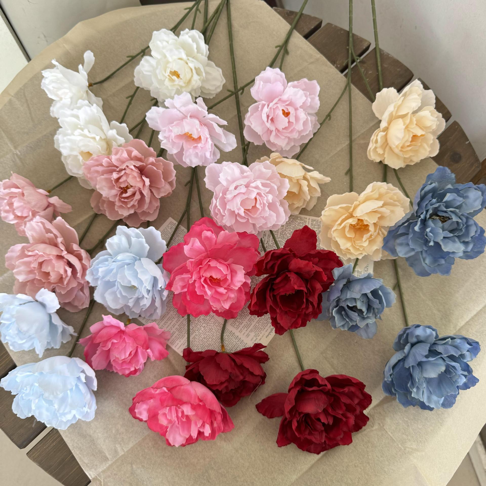 Bunga buatan 3-kepala kembang sepatu bunga peony sutra dekorasi pernikahan dekorasi panggung perlengkapan fotografi bunga palsu Spesial