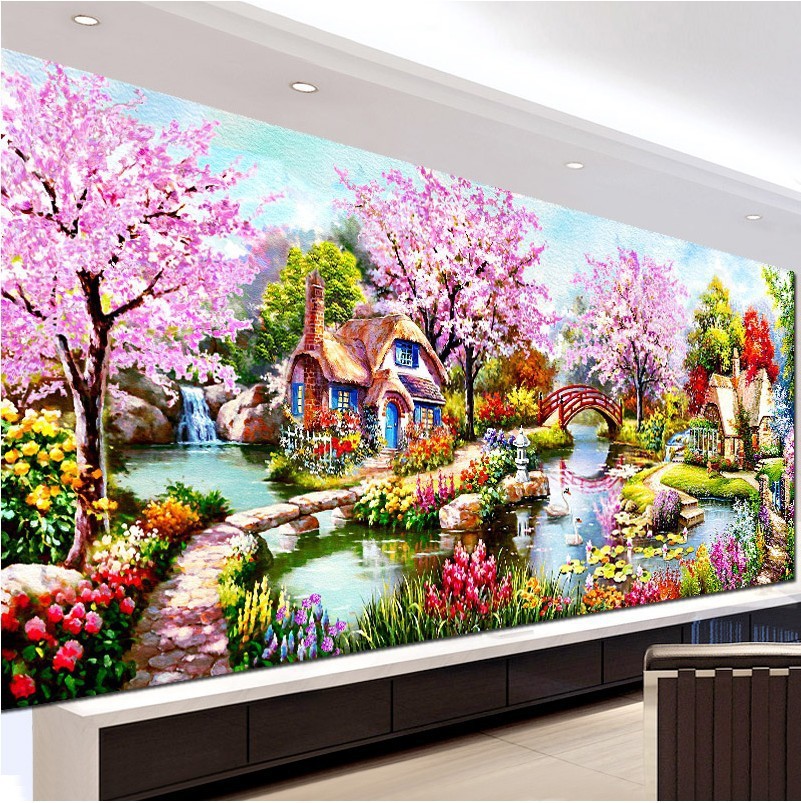 Dream Cottage lukisan berlian penuh gambar bata ruang tamu pastoral pemandangan berlian bordir sederhana Modern 5d lukisan berlian baru