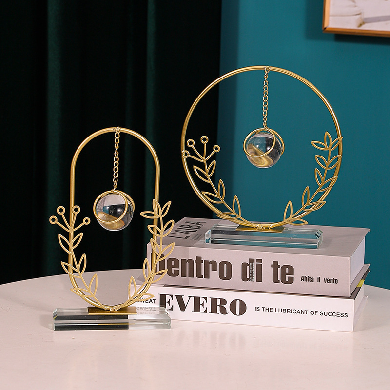 Dekorasi kantor kamar tidur ruang tamu rumah, kerajinan liontin bola kristal ornamen logam bulat Modern