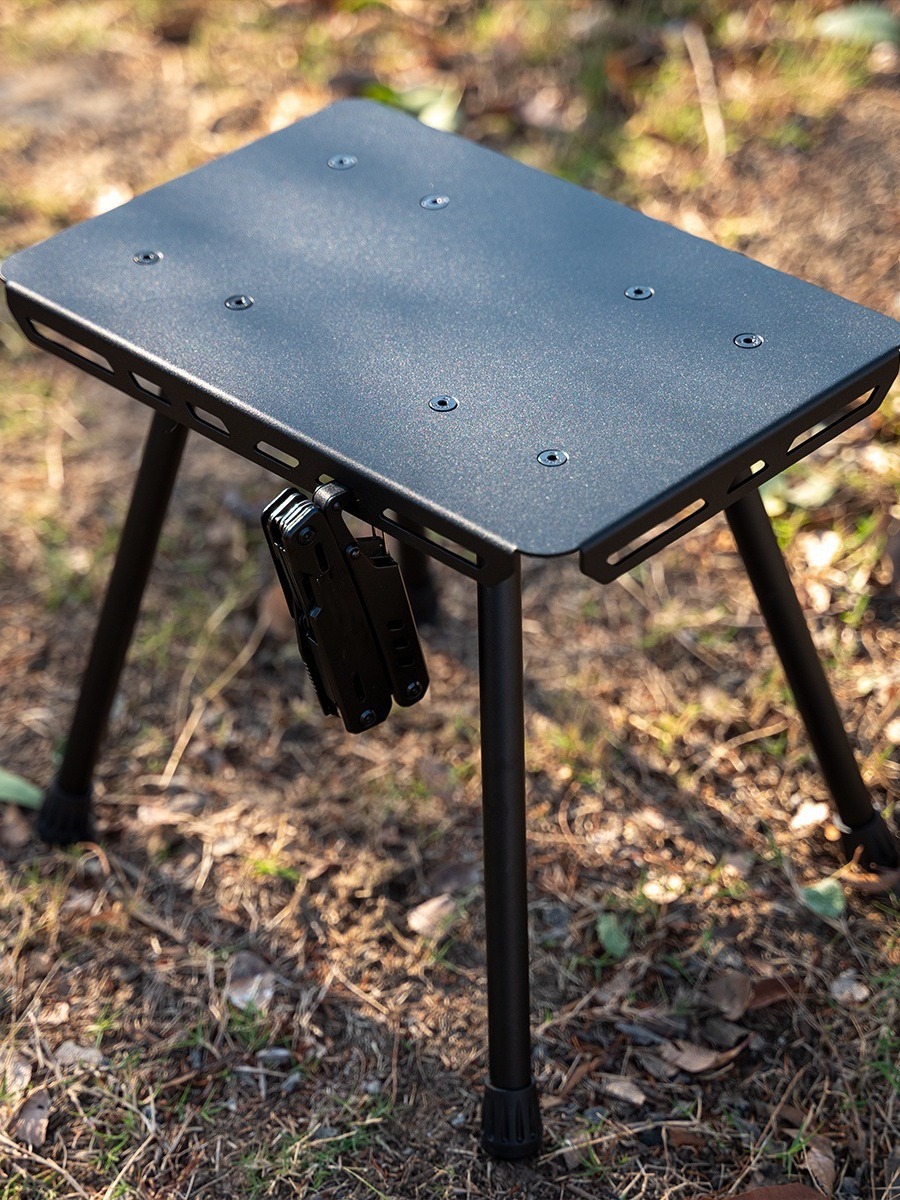 Bangku kuda poni taktis serbaguna ganda, pengangkat kaki meja berkemah luar ruangan ringan bangku kecil meja teh lipat memancing portabel