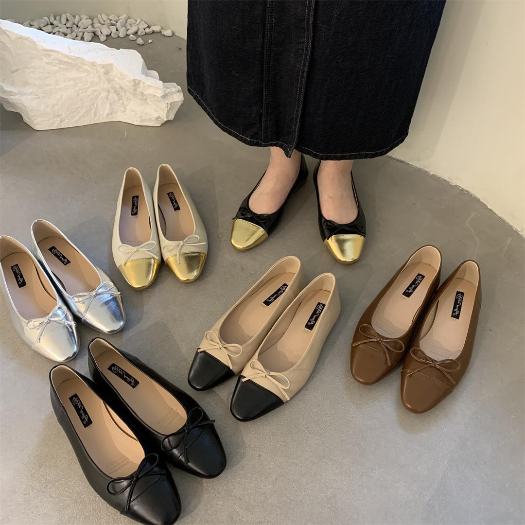 Sepatu hak datar sol rendah wanita, Kasut jempol persegi datar warna Cocok musim gugur 2023