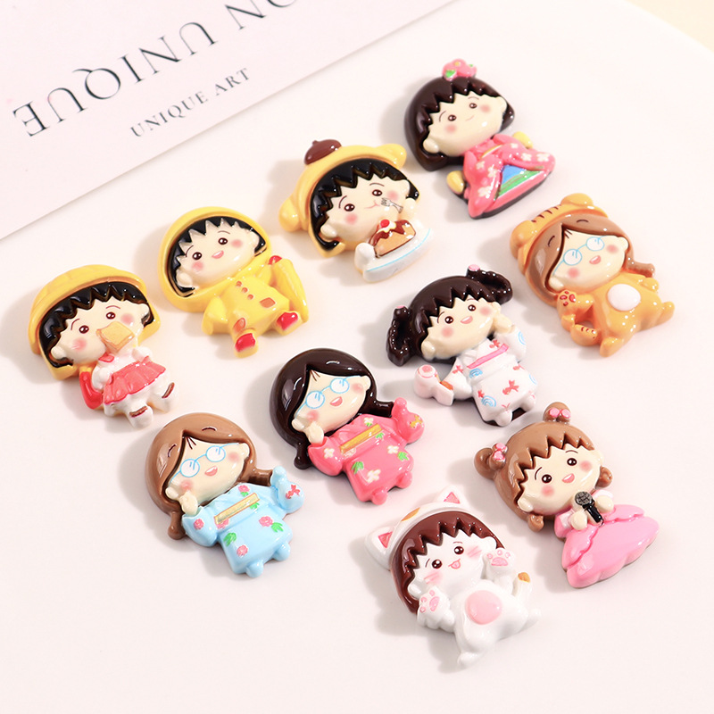 Lucu glossy kartun gadis kecil lem krim diy ponsel bahan shell jepit rambut tali kepala perhiasan patch bola kecil