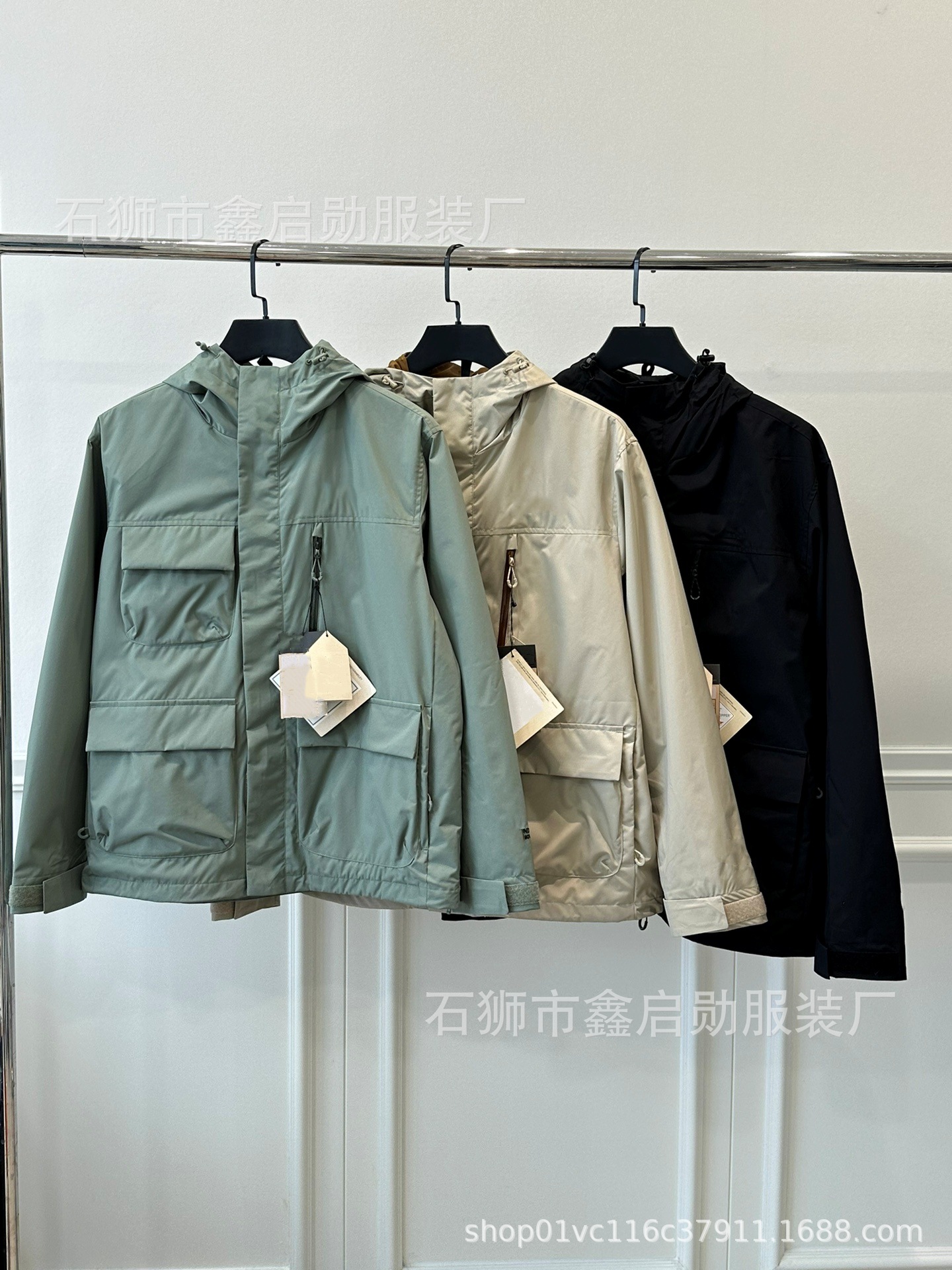 Workwear jaket multi-saku, jaket kasual trendi gaya TNF fungsi urban